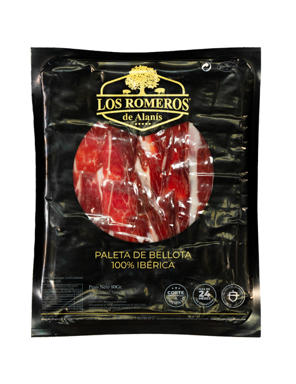 Descubre el auténtico sabor de España con nuestra Paleta de Bellota 100% Ibérica, una joya de la gastronomía española. Esta paleta proviene de cerdos ibéricos criados en libertad en las dehesas, alimentados exclusivamente con bellotas durante la montanera. El resultado es un producto de calidad excepcional, con una carne de textura jugosa, infiltración de grasa que se funde en boca, y un sabor intenso con notas dulces y de frutos secos. Cada loncha es una experiencia única, que te transporta a la tradición y el saber hacer de los maestros jamoneros.